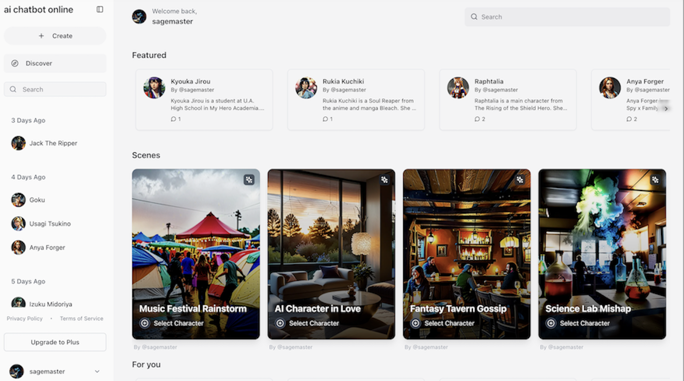 Chat with AI personas of beloved characters from various media.