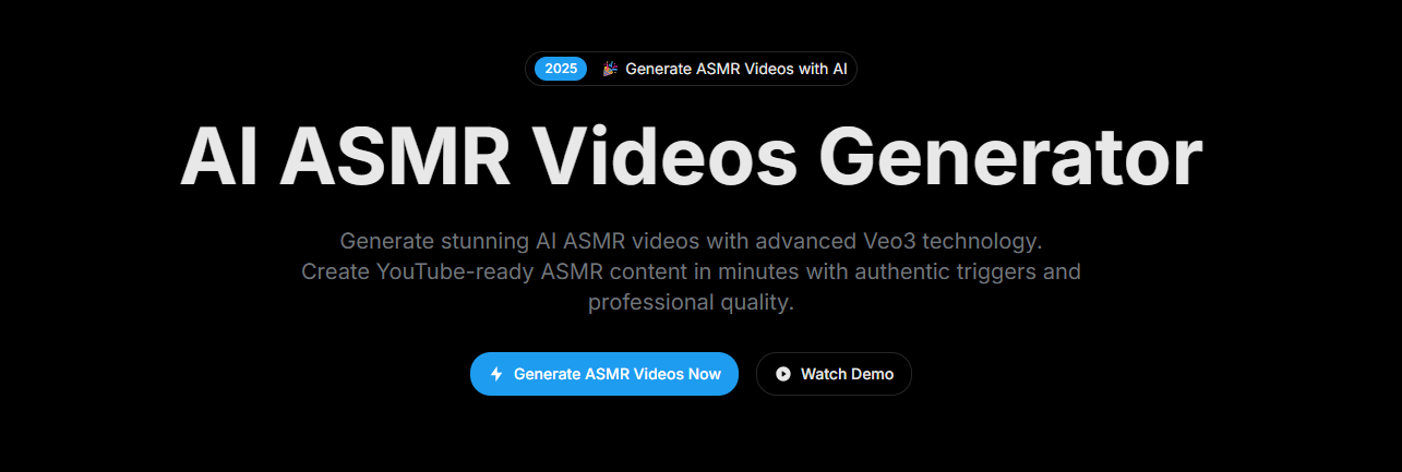 Create AI ASMR videos online with our professional generator. Generate authentic ASMR triggers and relaxing content for YouTube monetization.