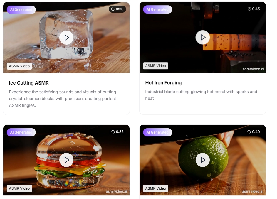 FREE credits for new users! Create Stunning ASMR Video with our AI-powered Veo3 generator.Perfect for YouTube creators and ASMR makers.No editing skills required.