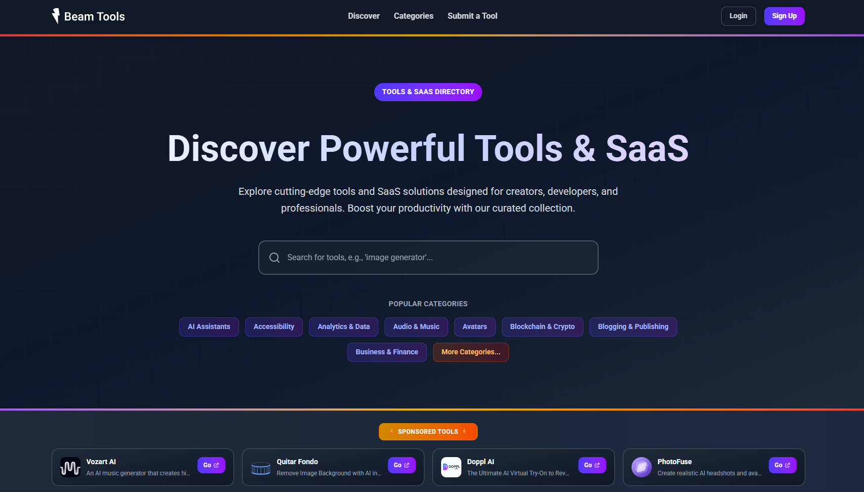 Explore cutting-edge tools and SaaS solutions designed for creators, developers, and professionals.