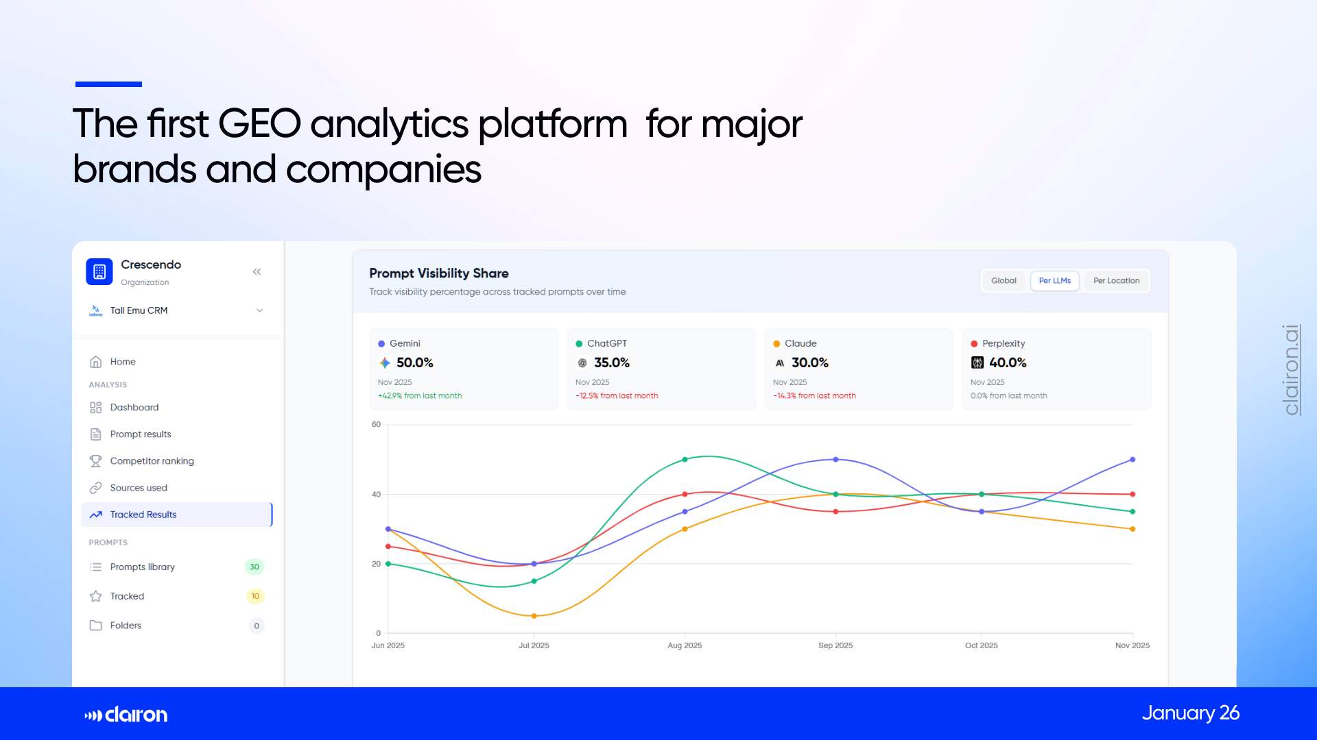Track your brand visibility across AI engines like ChatGPT, Claude, Perplexity, Gemini and more. Optimize your content to get mentioned by AIs.