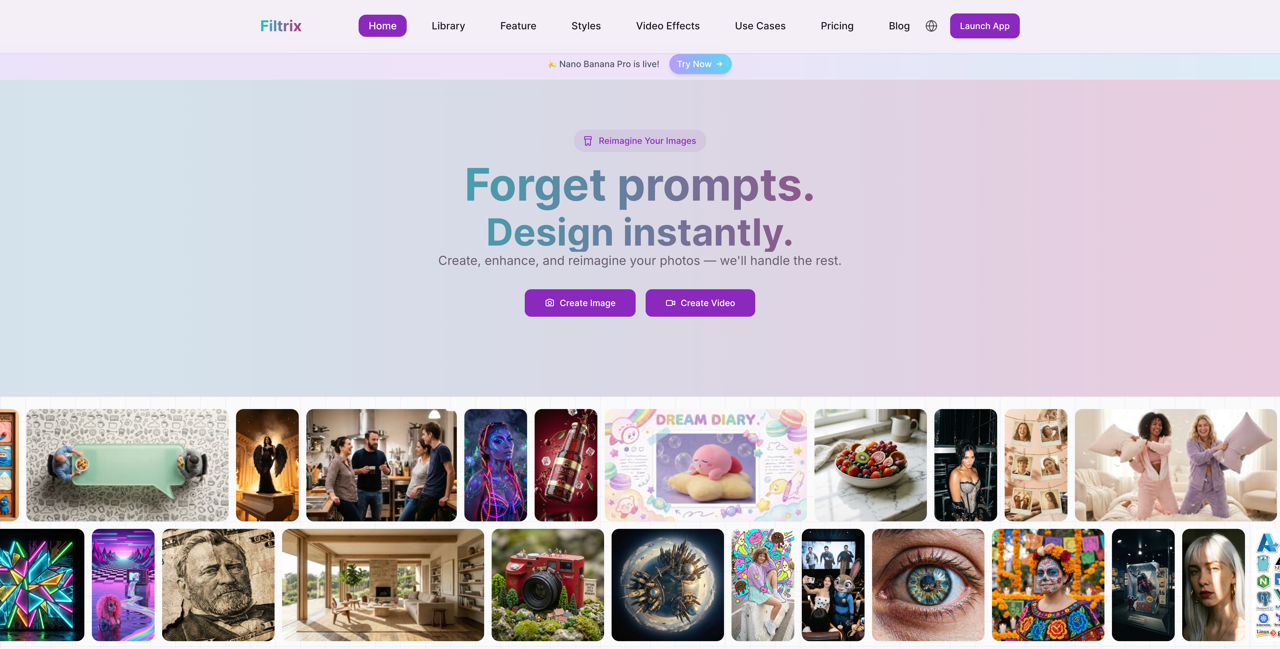 Filtrix AI is a powerful image editing and generation tool that leverages advanced AI technology to transform ordinary photos into stunning visuals with custom styles.