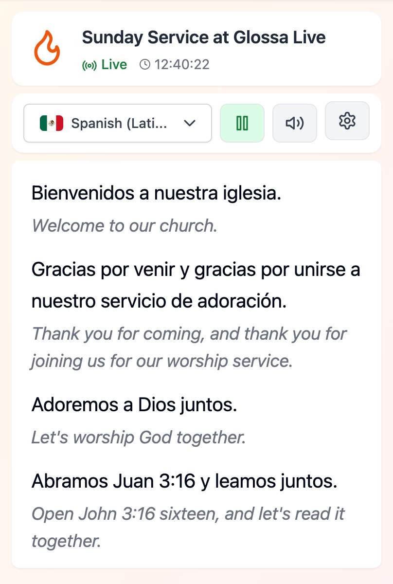 Accurate and fast AI translation of your sermons into 100+ languages. Available for only $5/hour/language. Reach international community in your city.