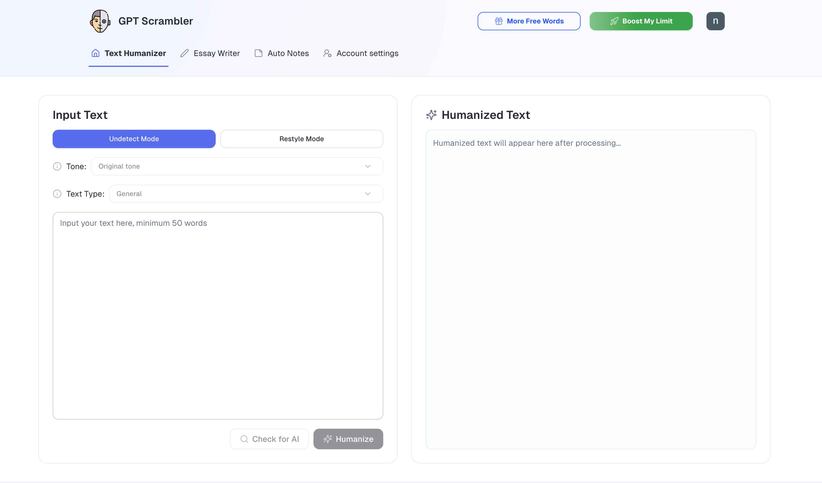 GPT Scrambler provides a simple and effective solution for humanizing AI-generated content, ensuring authenticity and bypassing detection tools.