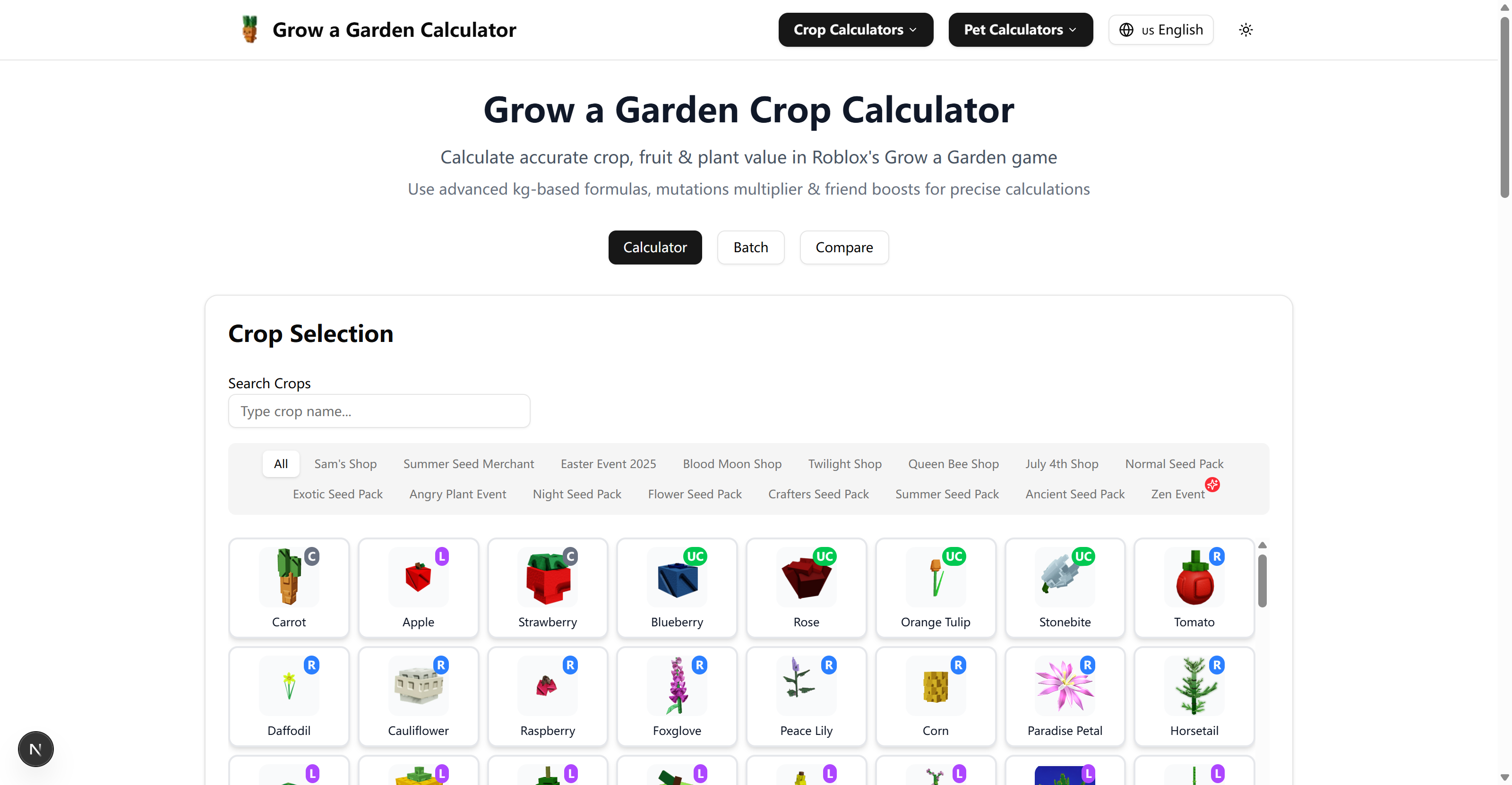 Calculate accurate crop value & pet age XP in Grow a Garden