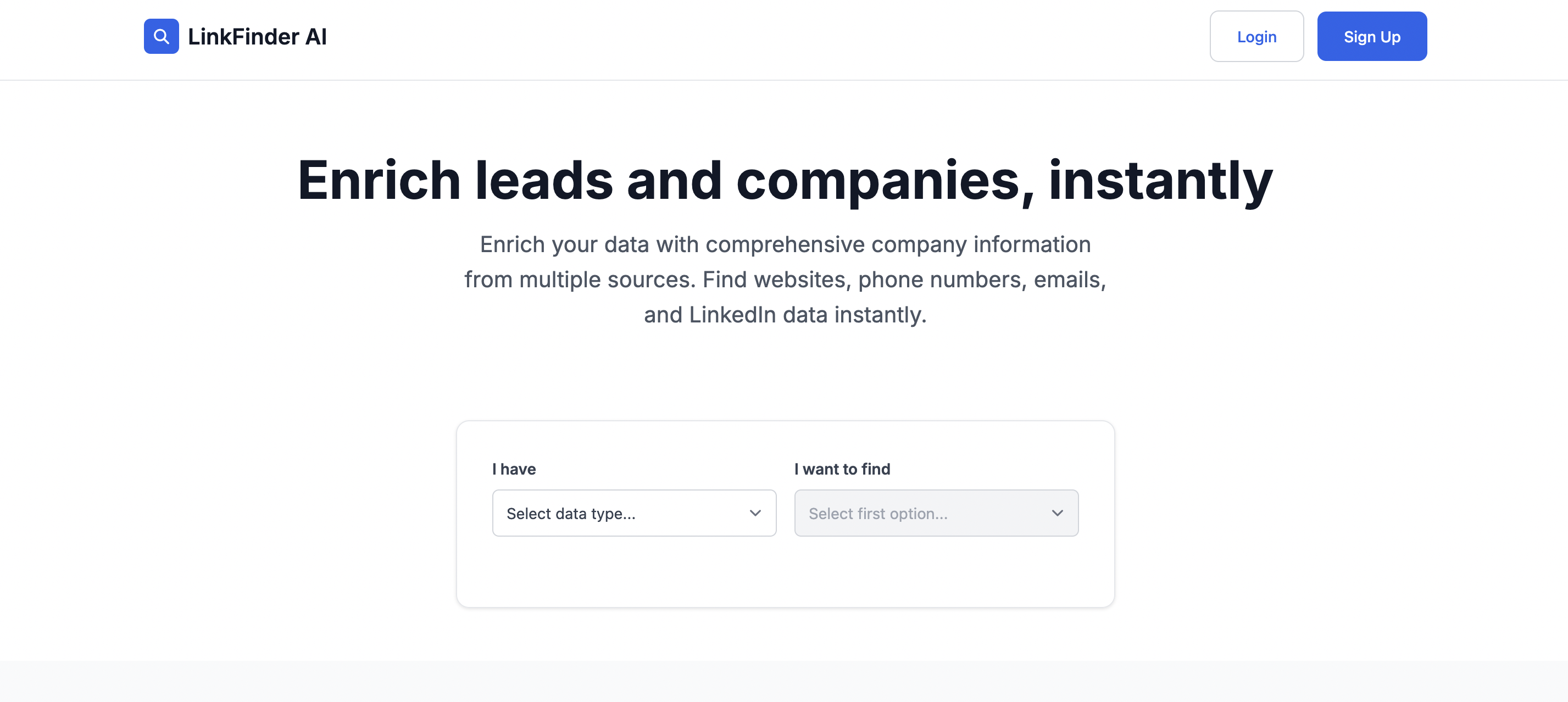Enrich your data with comprehensive company information from multiple sources. Find websites, phone numbers, emails, and LinkedIn data instantly