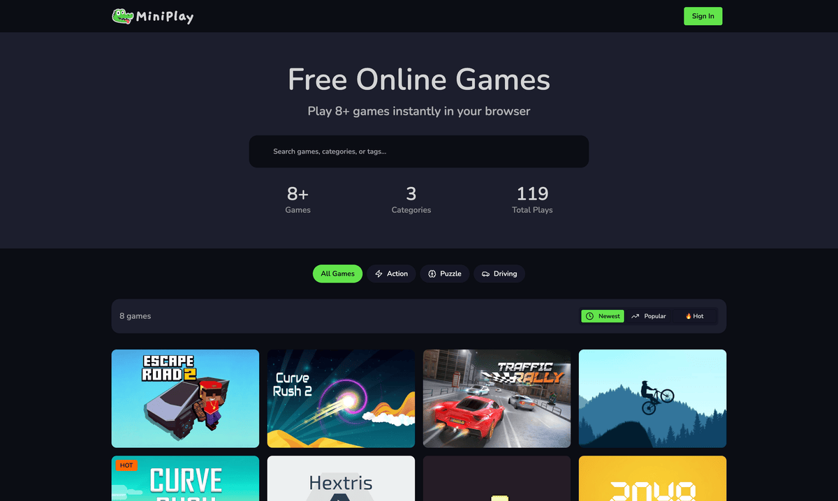 MiniPlay is a free online gaming platform. Discover a growing library of browser-based games you can play instantly with no downloads required.