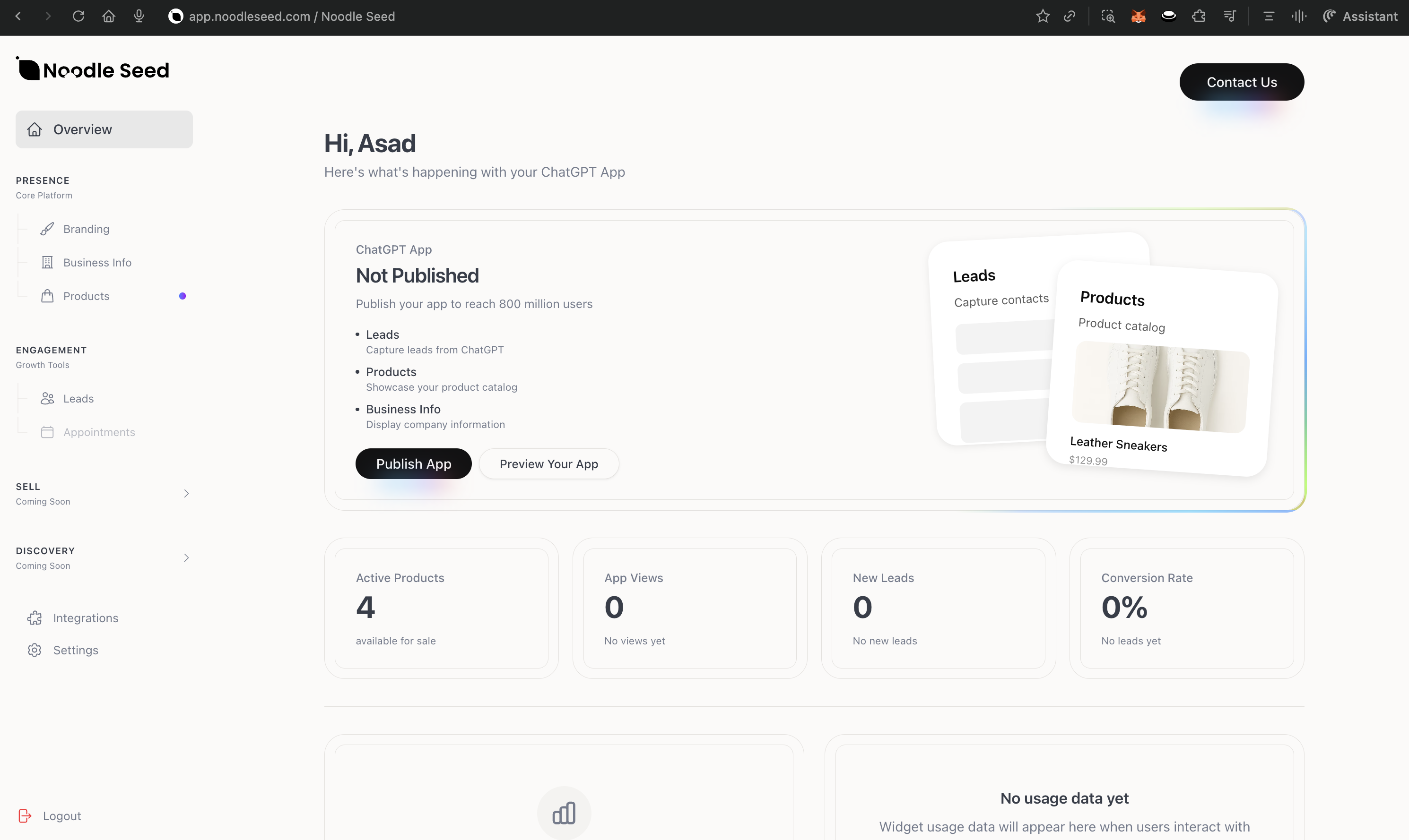No-code platform for building ChatGPT apps. Helps businesses reach 800M+ AI users without technical expertise. Shopify for AI apps.