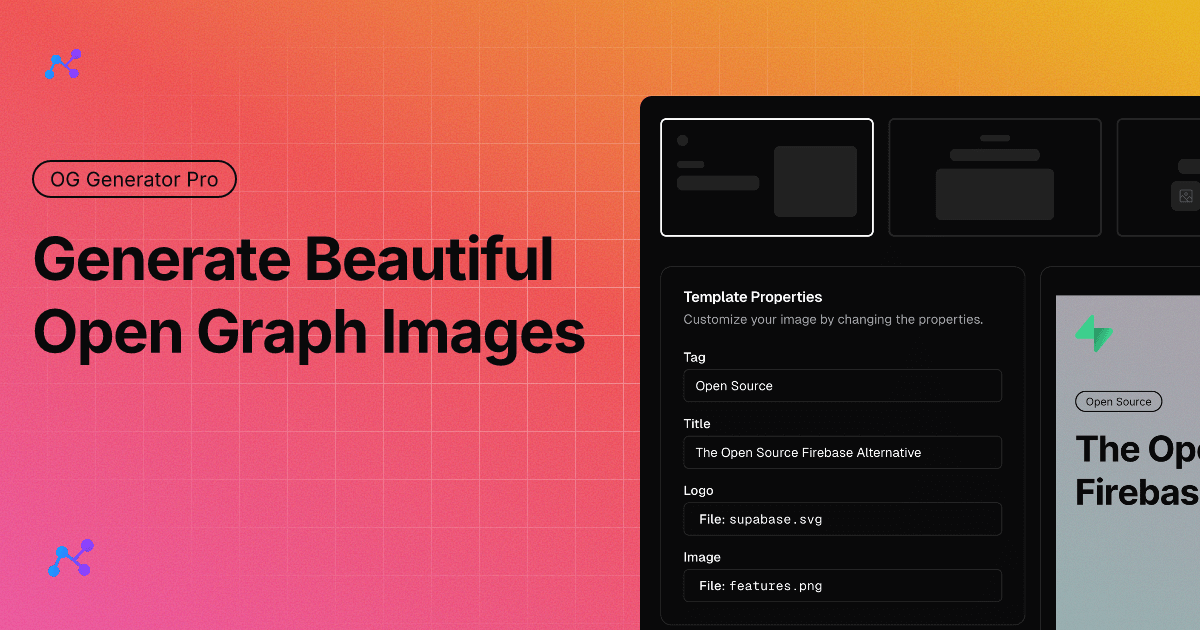 OG Generator Pro is a web-based tool that helps you generate Open Graph images effortlessly. Key features include: