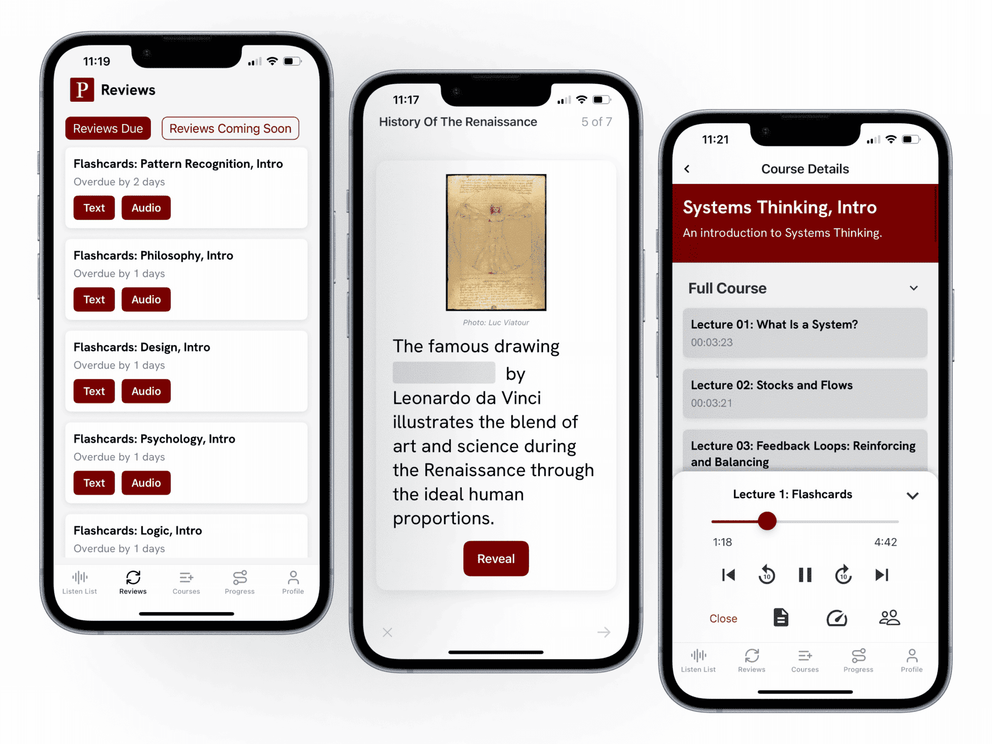 Polym is an audio app incorporating active learning for the retention and recall of foundational knowledge.