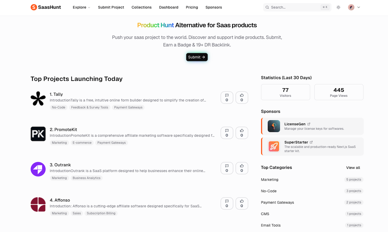 Similar to Product Hunt but with a sharp focus on SaaS, SaasHunt provides a community-driven space where users can explore, upvote, and discuss cutting-edge SaaS solutions.