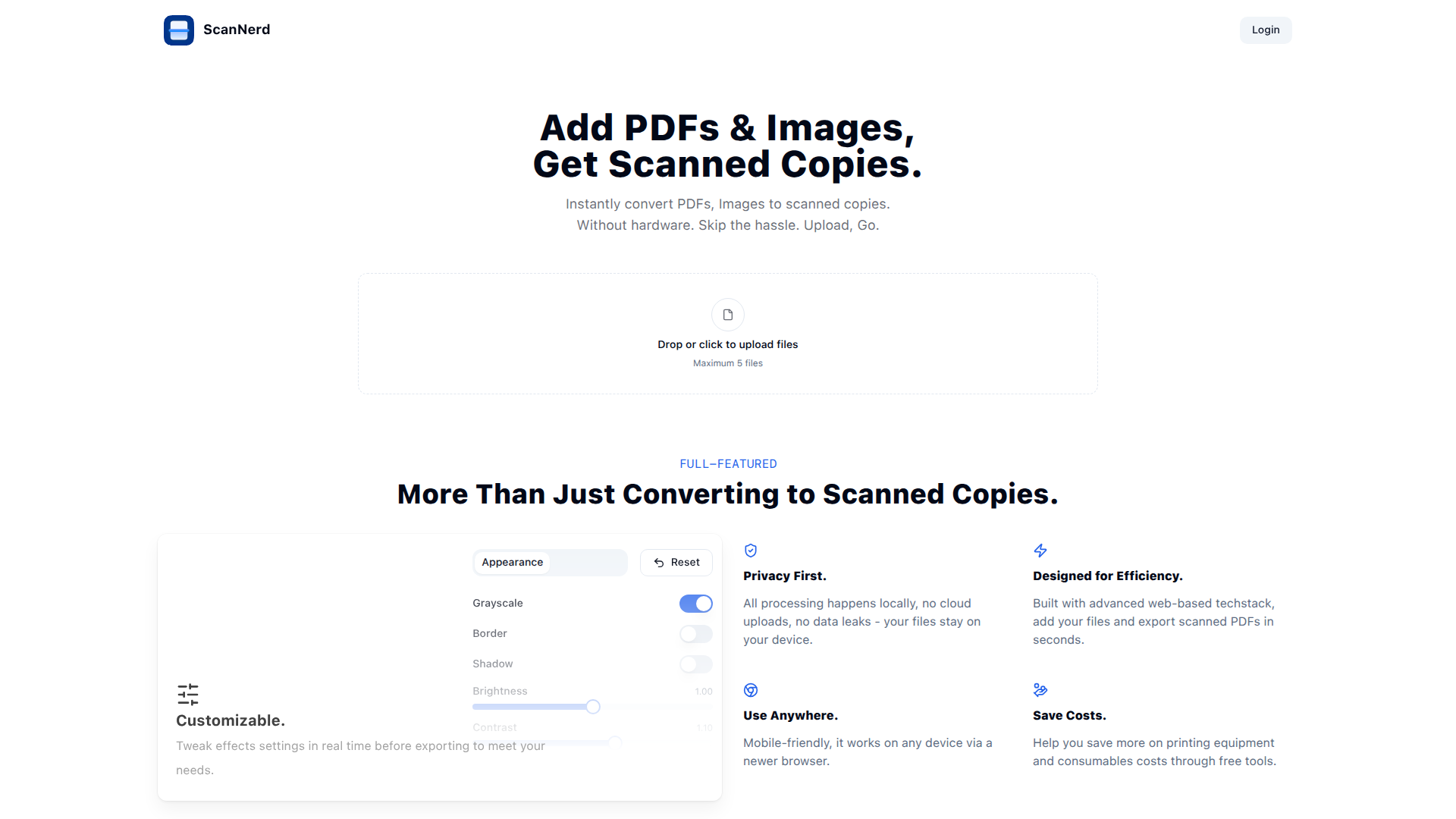 ScanNerd is a free PDF to scanned copy converter that adds scanner effects in seconds. No uploads, no signups. Works on any device, fully local.