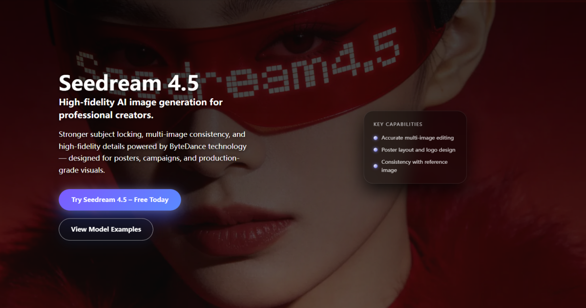 Seedream 4.5 is a fast AI image generator that creates high-quality, detailed, and consistent visuals in seconds. It supports text-to-image, image enhancement, multi-image consistency, and style control—ideal for creators, designers, and e-commerce visuals like posters, product shots, and character concepts.