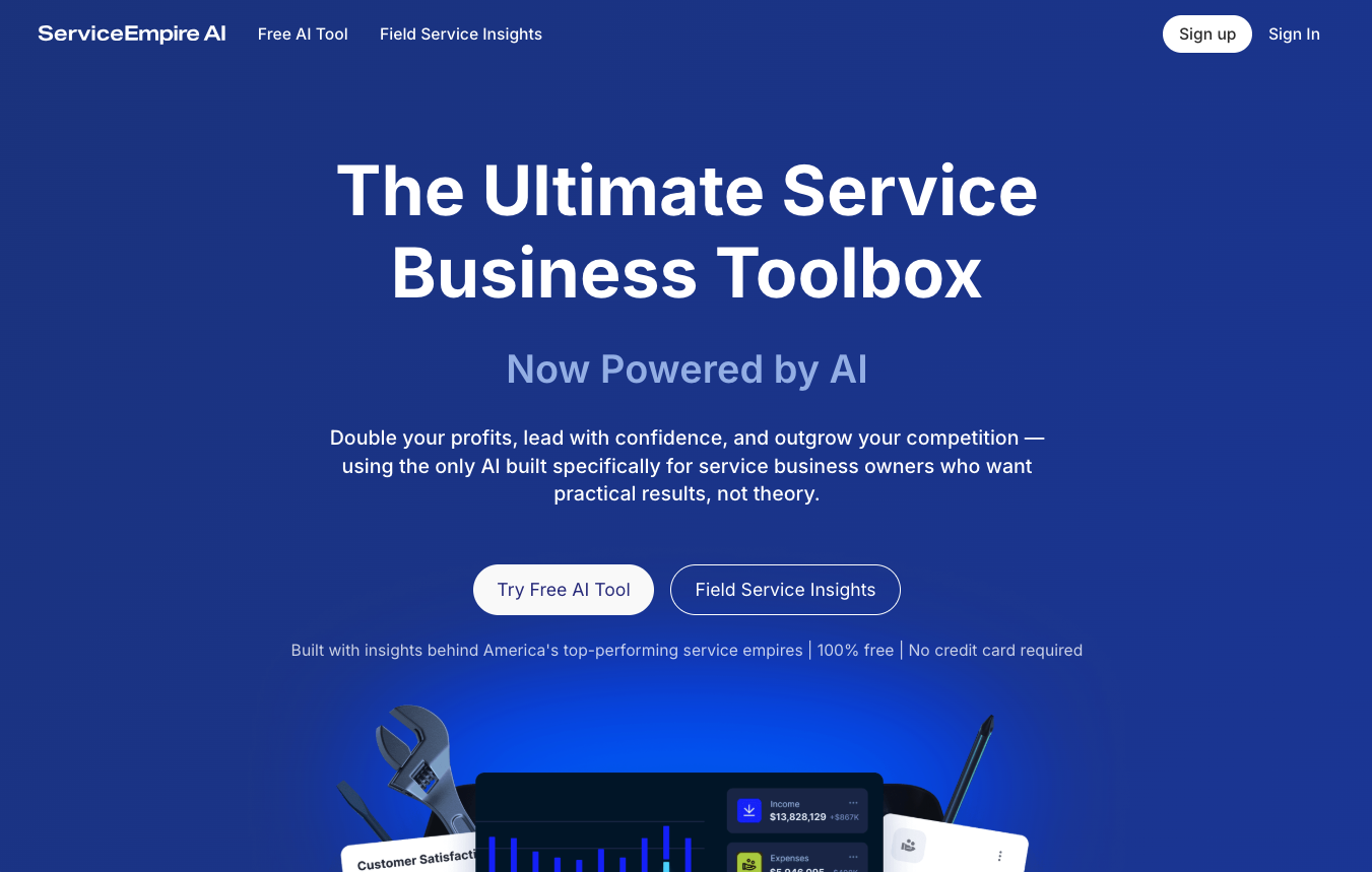 Service Empire AI is a free, all-in-one AI platform built specifically for field service business owners who want real growth—not theory. Created by operators who scaled service companies from single trucks to 9-figure empires, the platform delivers practical tools and systems that work in the real world of HVAC, plumbing, electrical, and other trade businesses.